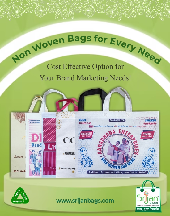 At Srijan Bags, we’re committed to protecting the environment. Our non-woven carry bags are eco-friendly, reusable, and biodegradable, helping reduce plastic waste while promoting your brand in style.